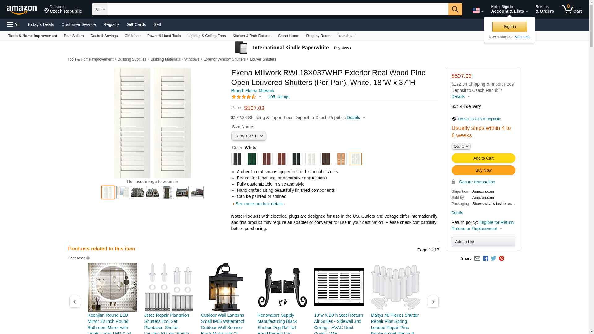 Ekena Millwork RWL18X037WHP Exterior Real Wood Pine Open Louvered Shutters (Per Pair), White, 18"W x 37"H