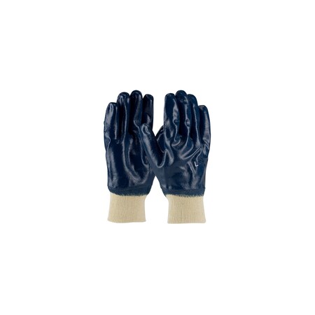 Standard weight, fully coated jersey, blue, knitwrist. Heavy duty and extremely tough. Jersey liner. Blue nitrile coating. Excellent cut and abrasion resistance. Chemical and cut resistant. X-Large.