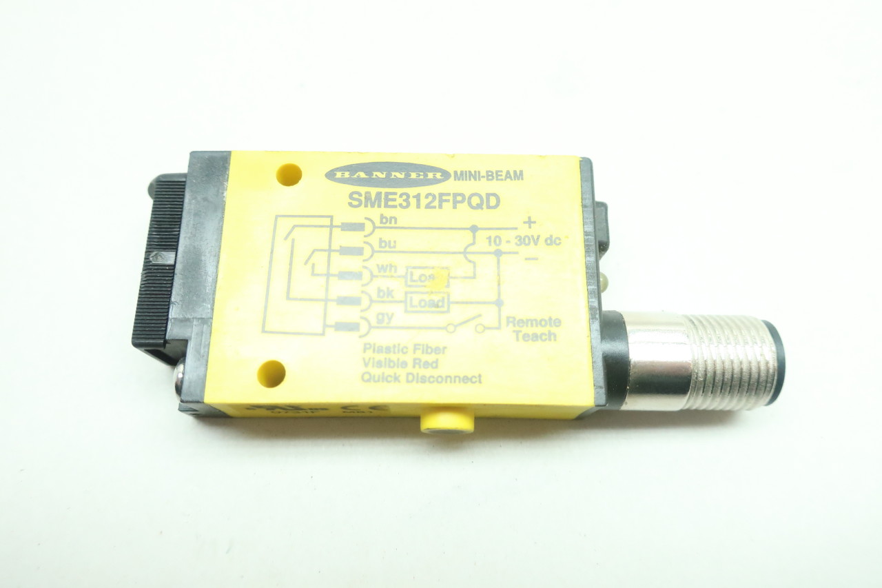 BANNER ENGINEERING SME312FPQD NPN, PHOTOELECTRIC Sensor, Fiber Optic, PNP, 10-30 VDC, Visible RED LED, M12 5-PIN Euro-Style Connector, IP67, (53732), -20 to +70 Degrees C