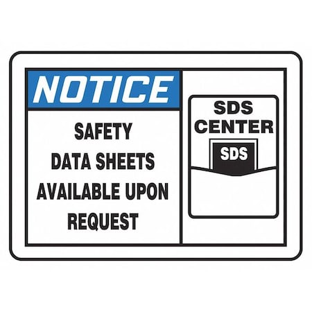 7" x 10" Adhesive Vinyl Sign: "SDS Available Upon Request SDS Center" Give employees and visitors the opportunity to fill out safety data sheets when requested. Adhesive Vinyl (VS) - Self-stick custom signs. Adhesive Vinyl is a moisture-resistant custom sign material that adheres to almost any flat surface. Adhesive vinyl signs will work for short term outdoor applications, and in moderate temperatures.