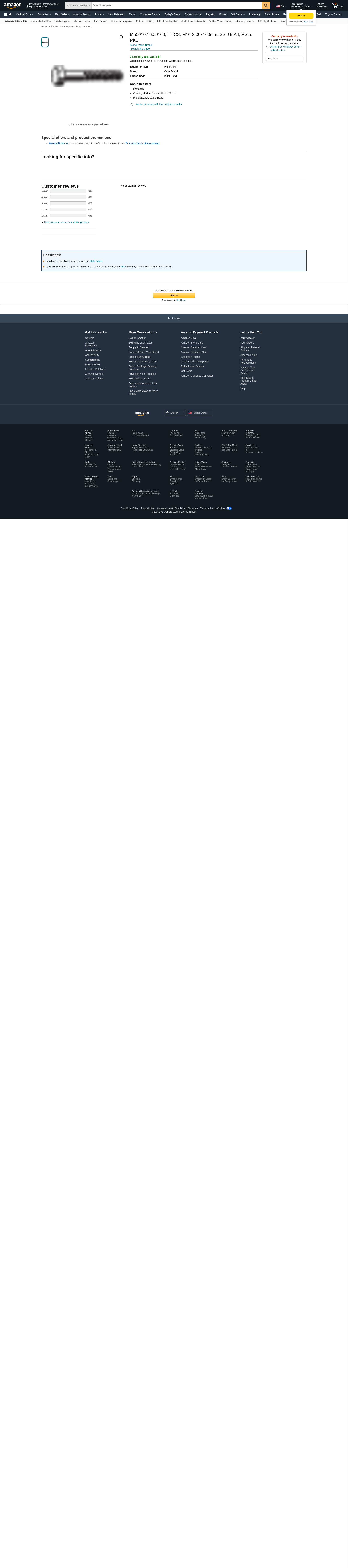 Value Brand, M55010.160.0160, HHCS, M16-2.00x160mm, SS, Gr A4, Plain, PK5