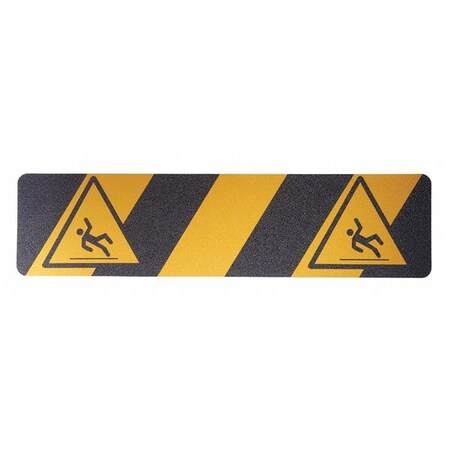 Safe Way Traction 6" X 24" Tread Black and Yellow Adhesive Anti Slip Non Skid Abrasive Safety Tape with Slipping Man Image