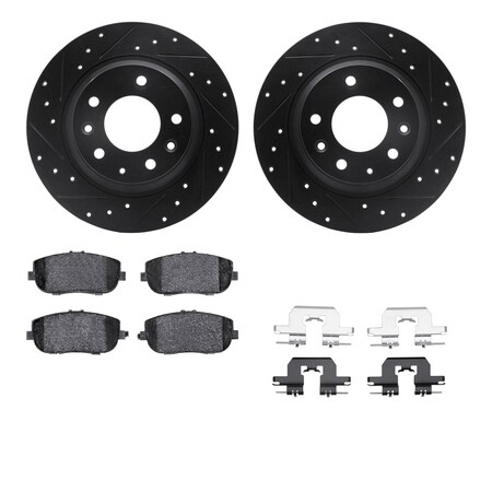 Dynamic Friction Company Rear Brake Rotors Drilled and Slotted Black with 5000 Advanced Brake Pads includes Hardware - 8512-54067