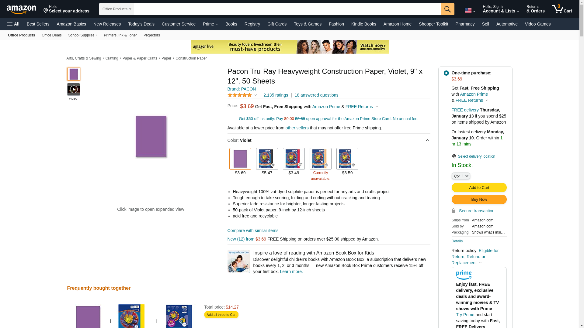 Pacon 103009 Tru-Ray Construction Paper, 76 lbs., 9 x 12, Violet, 50 Sheets/Pack