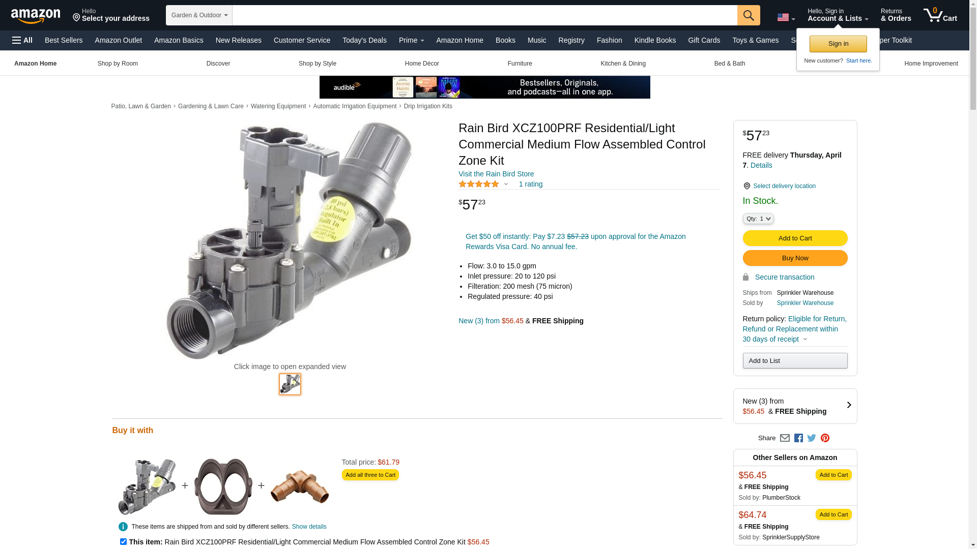 | Sprinkler Supply | XCZ100PRF | 1 | 107 | 1 | 1 @ $68.65 |