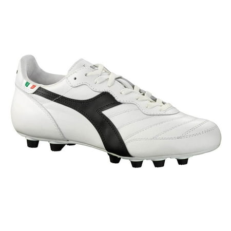 Brasil Italy LT MD Soccer Cleats from Diadora constructed of calf skin leather. Details: Ultrasoft water resistant calf skin leather upper, anti-stretch fabric lining and anti-slip rear lining, sockliner with bending points in the forefoot area, anatomical, made from fabric and shock-absorbing EVA elastomer insole, differentiated density polyurethane outsole with 12 fixed studs. Material: Calf Leather, Polyurethane.
