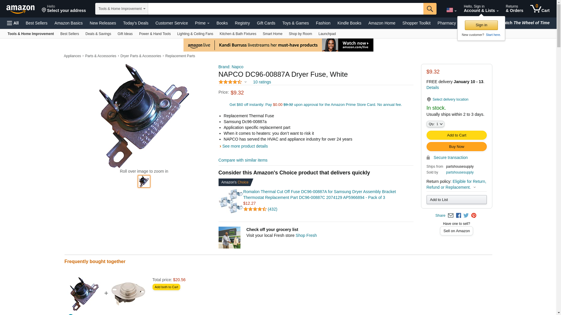 NAPCO DC96-00887A DC96-00887A DRYR FUSE - Dryer Thermal Fuse (Samsung(R) DC96-00887A)<br><br>Overview: <br>Appliance Accessories - Dryer Connection & Accessories - Thermastats<br><br>Specification: <br>†Replacement thermal fuse;†Samsung(R) DC96-00887A;