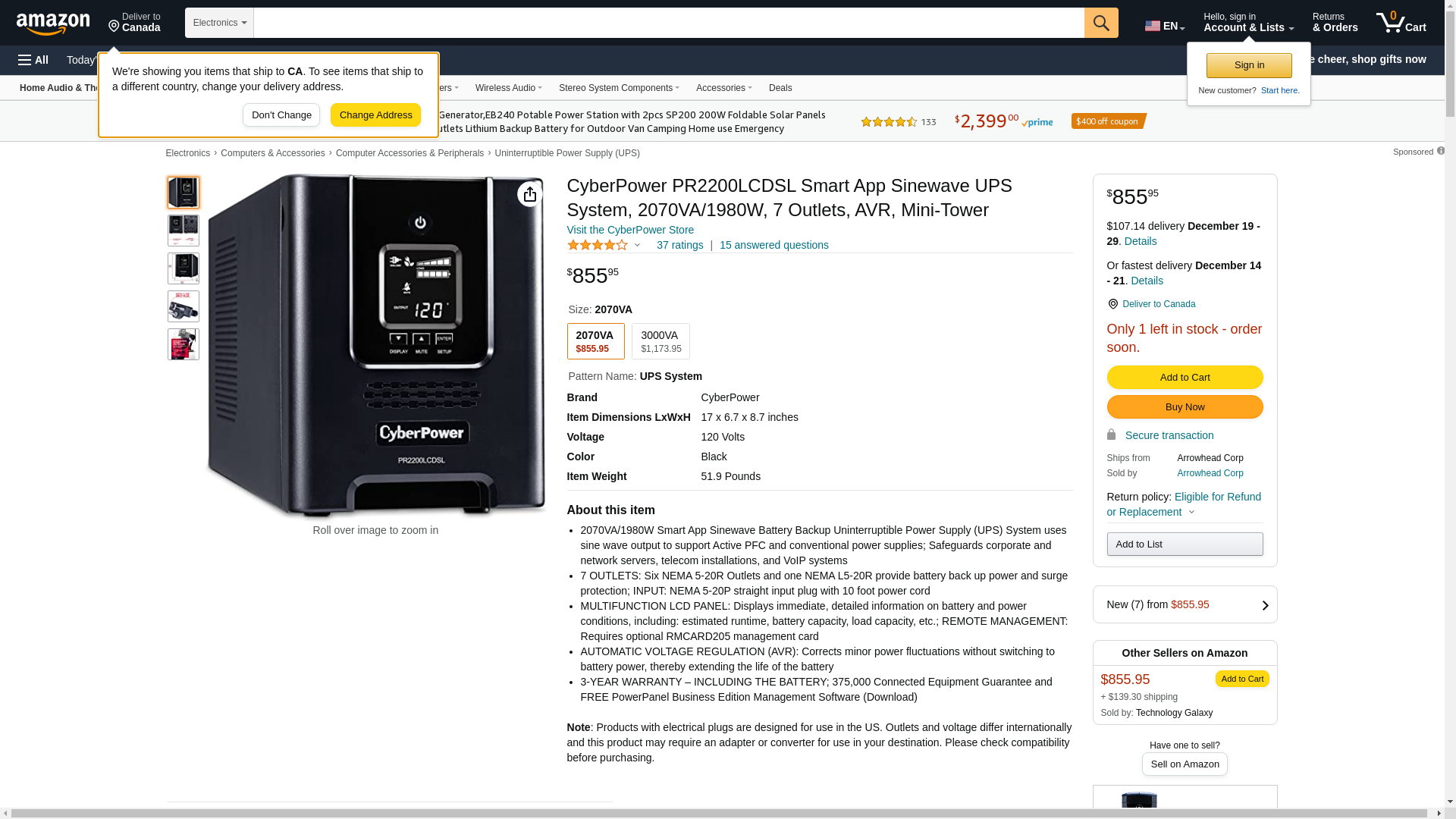 Cyberpower Smart App Sinewave Pr2200lcdsl 2070Va Pure Sine Wave Tower Lcd Ups . 2070 Va/1980 W . Tower . 3 Minute . 6 X Nema 5. 20R . , 1 X Nema L5. 20R "Product Type: Ups/General Purpose Ups"