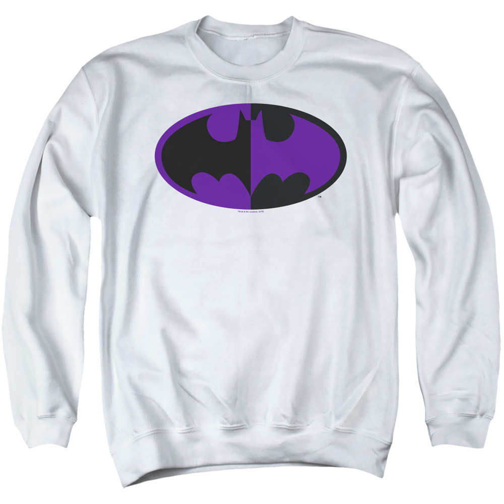 Trevco BM2918-AS-3 Batman & Split Symbol-Adult Crewneck Sweatshirt, White - Large