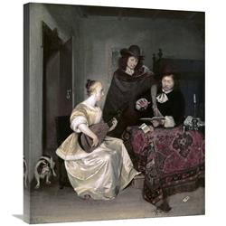 Global Gallery Budget GCS-276777-30-142 Gerard TER Borch Young Woman Playing The Theorbo to Two Men Gallery Wrap Giclee on Canvas Wall Art Print