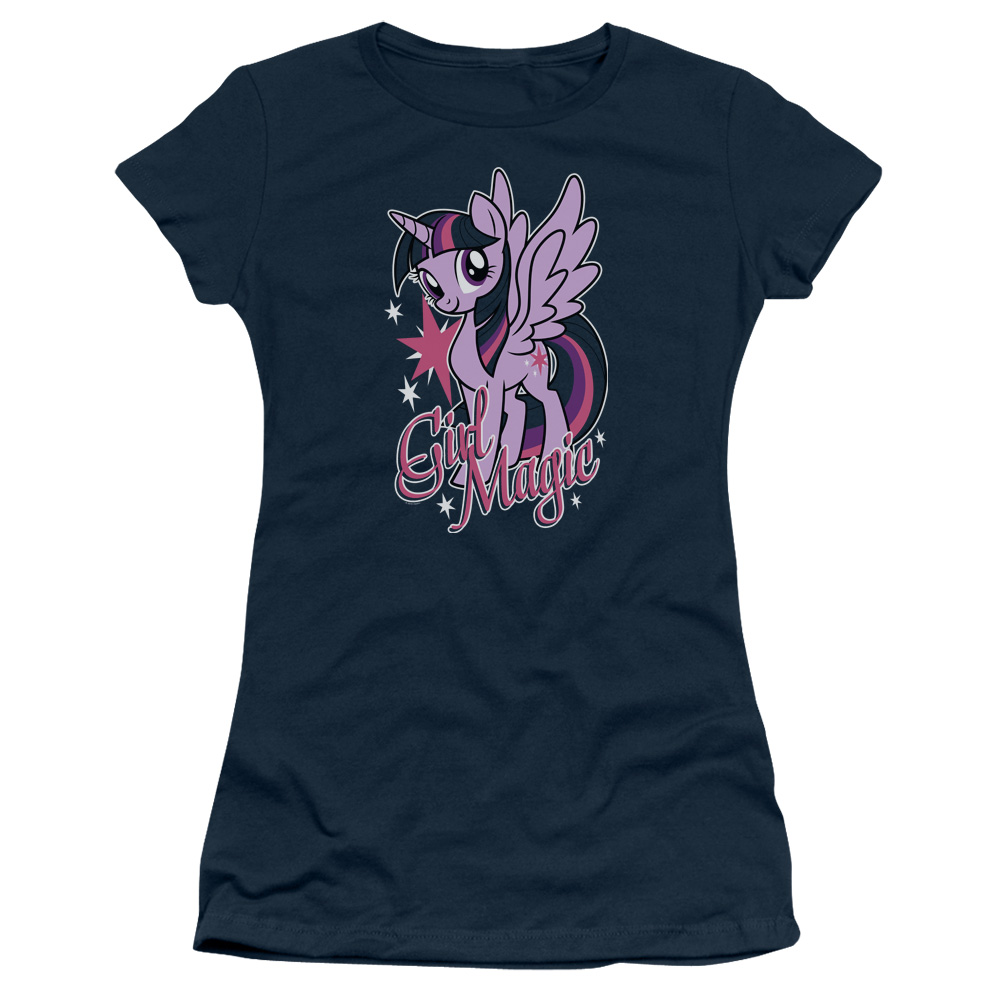 Trevco HBRO147-JS-5 My Little Pony TV & Girl Magic-Short Sleeve Junior Sheer T-Shirt, Navy - 2X