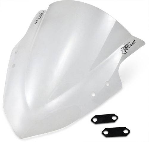 Color: Clear<br>Marketing Color: Clear<br>Primary Color: Clear<br><br>All fits ZERO Gravity windscreens offer superior optical quality, strength plus flexibility, exceptional fit and finish, plus race-proven performance.<br> Developed by fits ZERO Gravity R&D in 1995 for Team ZGs race bikes, the Double Bubble is now seen on race tracks around the world.<br> Made from the finest grade of 1/8in. acrylic plastic. Each windscreen is stretched as it is formed, a process which results in superior strength and flexibility. This flexibility allows the windscreen to absorb road vibrations and resist cracking.<br> Formed with a wedge-shaped bubble in the center of the windscreen, the Double Bubble was originally designed to provide superior aerodynamics for a rider tucked in behind the windscreen.<br> Adds a sleek, aerodynamic look to the exciting designs of todays new sportbikes.