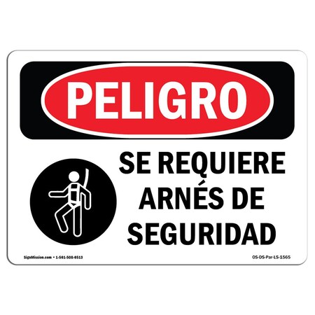 OSHA Danger Sign, Safety Harness Required Spanish, 7in X 5in Decal