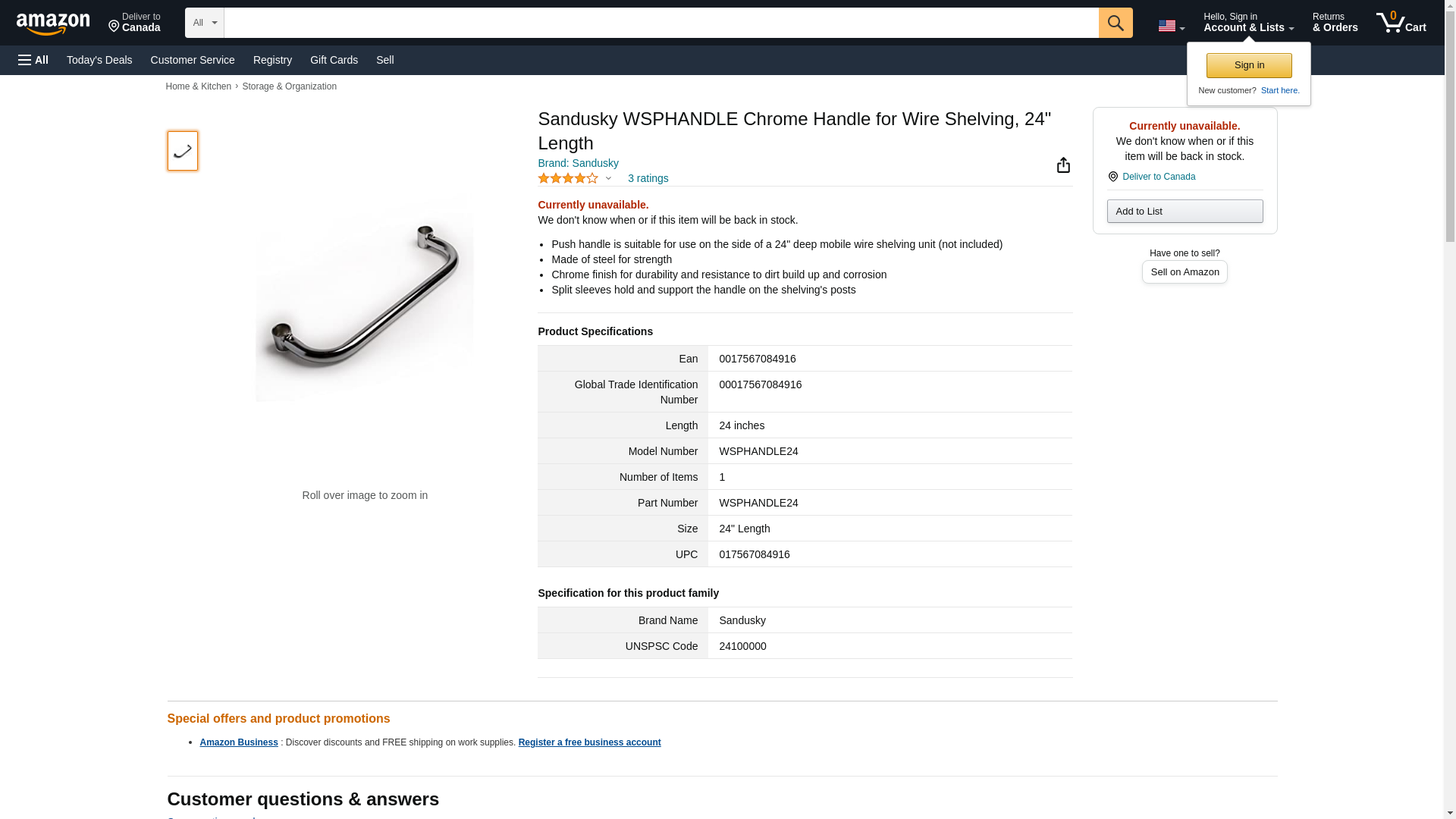 Sandusky WSPHANDLE Chrome Handle for Wire Shelving, 24" Length