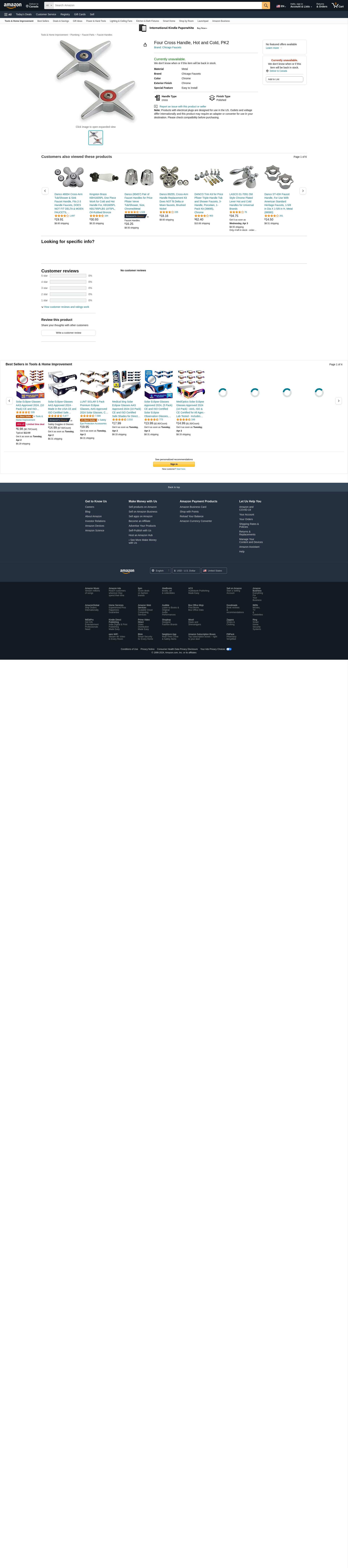 Handle, Fits Brand Chicago Faucets, For Use With Mfr. Model Number 895-ABCP, Faucet Handle Type Cross, Finish Chrome, Use With Water Temp. Hot/Cold, Metal, Package Quantity 2