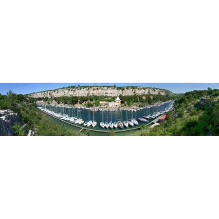 Panoramic Images Stretched Canvas Art - High angle view of boats at marina, Calanque de Port-Miou, Cassis, Bouches-Du-Rhone, Provence-Alpes-Cote D'Azur, France - Large 27 x 9 inch Wall Art Decor Size.