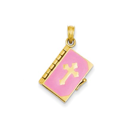 14k Yellow Gold Enameled Lord's Prayer Bible Pendant (12 x 23 mm)