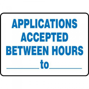 Applications Accepted Between Hours ___ To ___ 7" x 10" - MADM525XP - Jendco Safety Supply