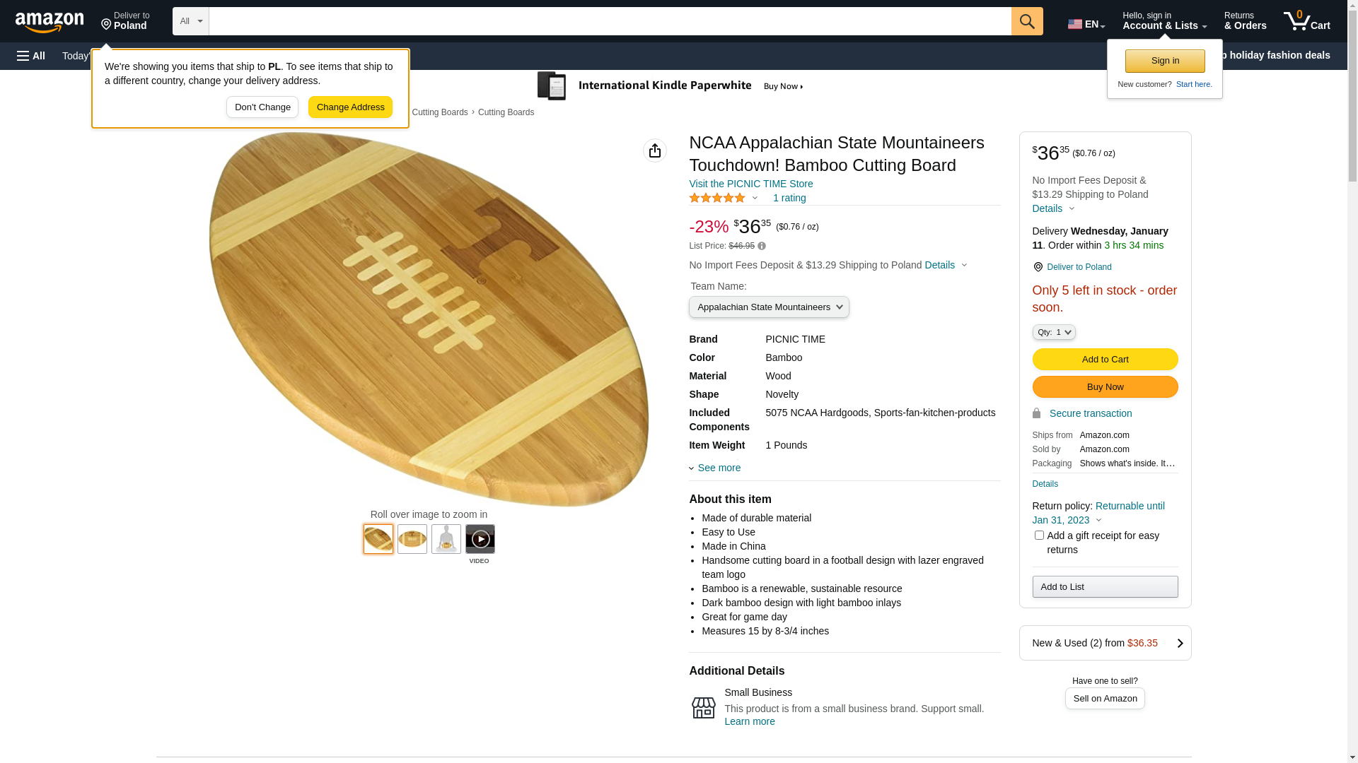 NCAA Appalachian State Mountaineers Touchdown! Bamboo Cutting Board