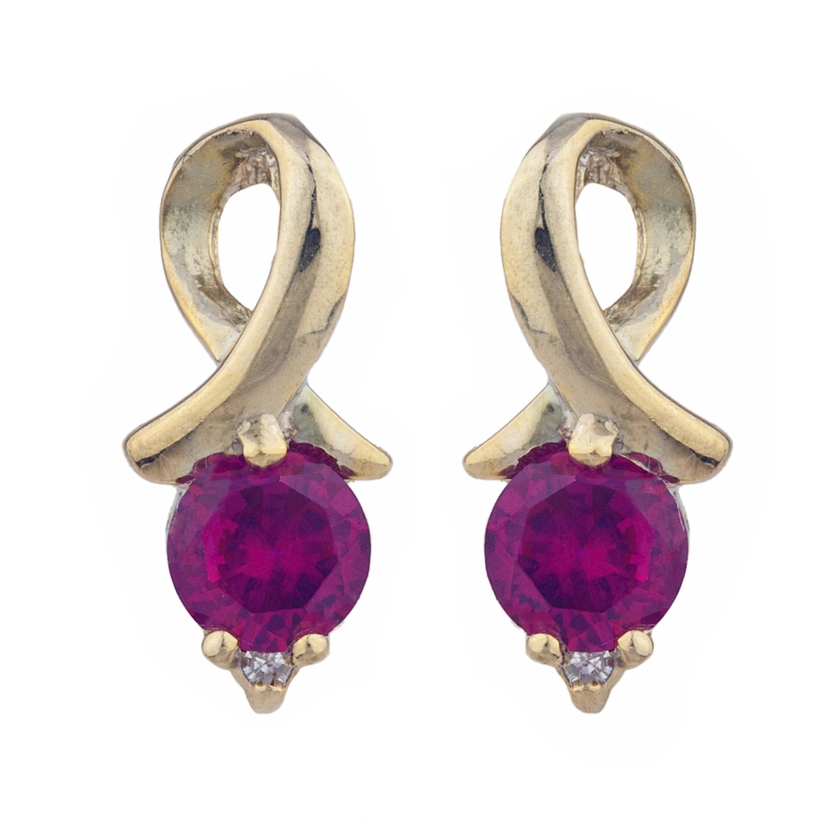 Elizabeth Jewelry ER1303-RUBY-YGP 14kt Yellow Gold Plated Created Ruby & Diamond Round Design Stud Earrings