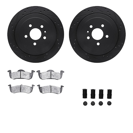 8212-55016, Rotors-Drilled, Slotted-BLK w/Heavy Duty Brake Pads incl. Hardware, SLVGeospec Coat,