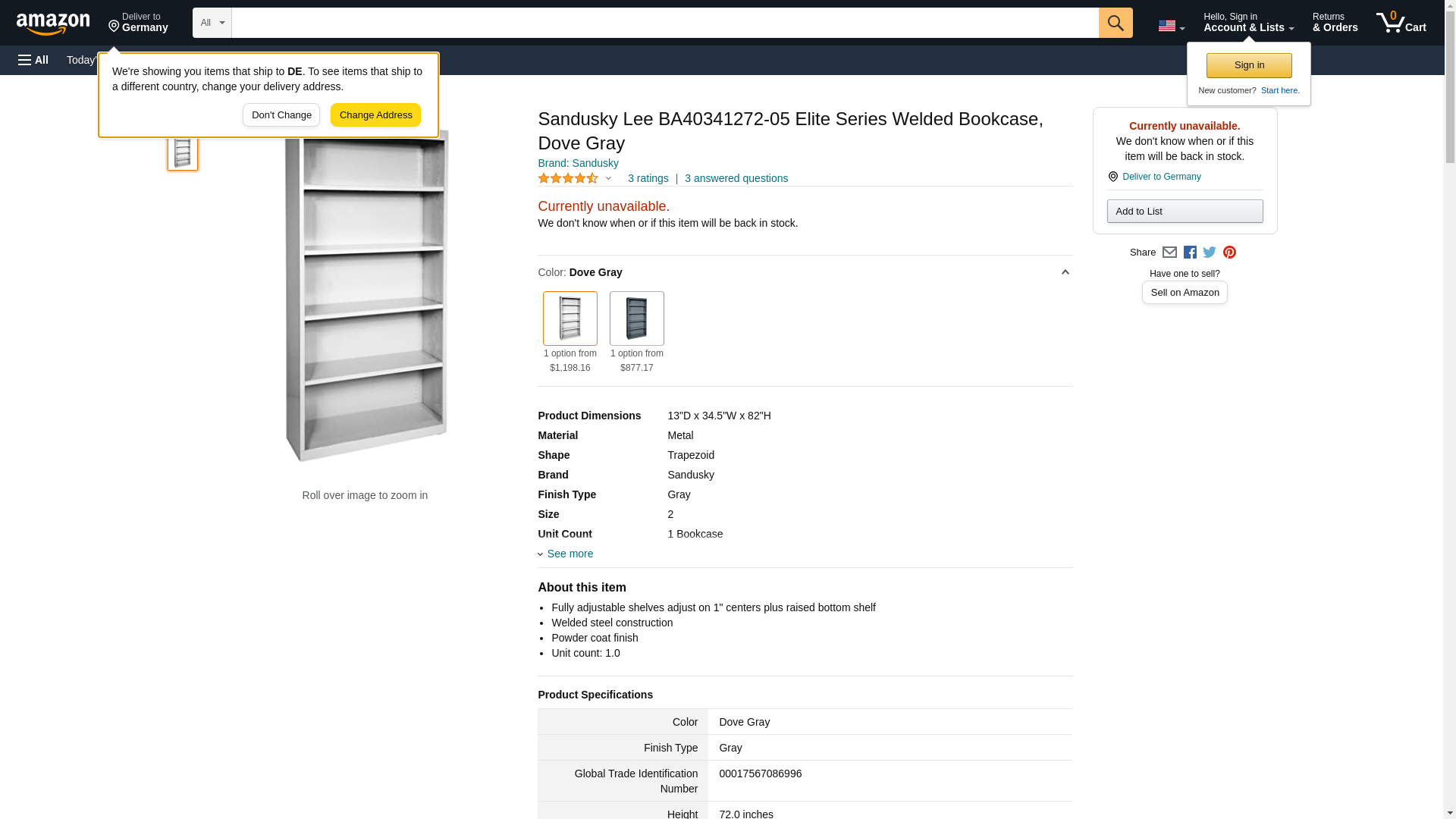 Sandusky Lee BA40341272-05 Elite Series Welded Bookcase, Dove Gray