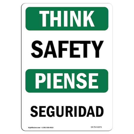 OSHA Think Sign - Safety | Rigid Plastic Sign | Protect Your Business, Construction Site, Warehouse & Shop Area | Made in The USA