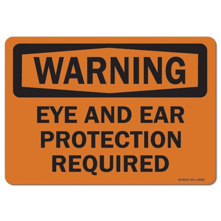 OSHA Warning Decal, Ear and Eye Protection Required, 14in X 10in Decal