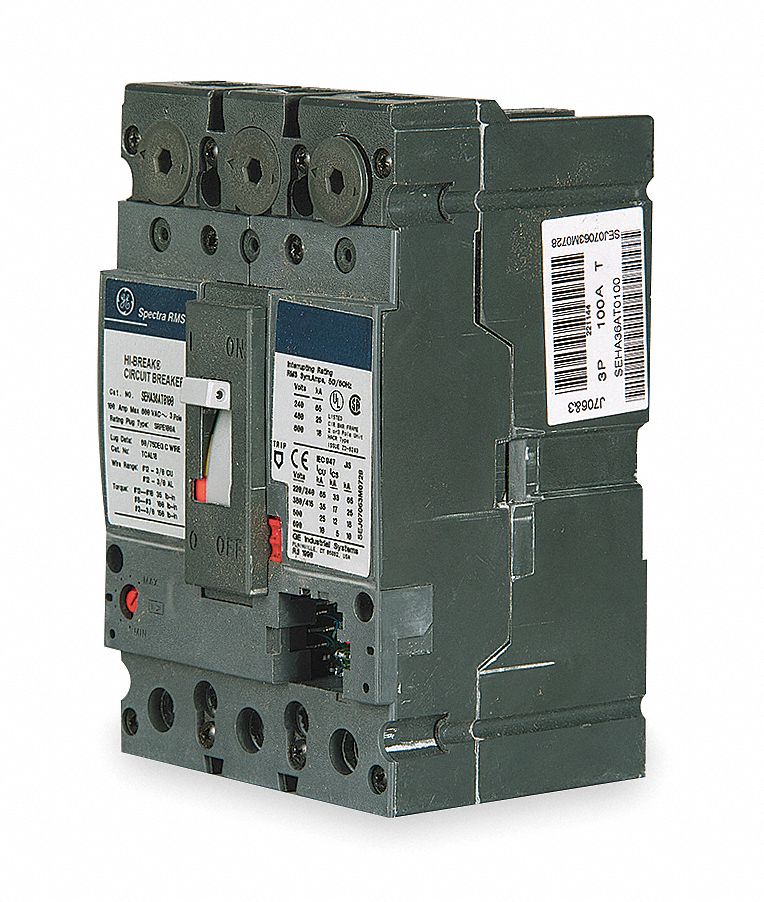 General Electric<br>GE<br> Cat No. SFHA36AT0250<br><br> Hi-Break Circuit Breaker<br> 250 Amps Max | 250 A Plug<BR> Spectra RMS<br> Auxiliary Switch<br><br>Includes set of bottom/load-side lugs<br><br> 3 Pole<BR> 480/600 VAC<br> 50/60 Hz<BR> HACR Type<br><BR> Rating Plug:<BR> 250 Amps<BR> Type SRPF250A<BR> Cat. SRPF250A250<BR> Inst. Adjustable Range: 740-2500 A (Lo to Hi)<BR><BR> Aux. Switch:<br> Cat. No. SAUXPAB2<br> 5 Amps @ 240 Volts AC<br> 0.5 Amps @ 125 Volts DC<br><br><br> Breaker Weight: 7.9 lbs.<BR> Breaker Dimensions (D x W x H): 4" x 4" x 10"<br> (add 0.75" to depth measurement for handle)