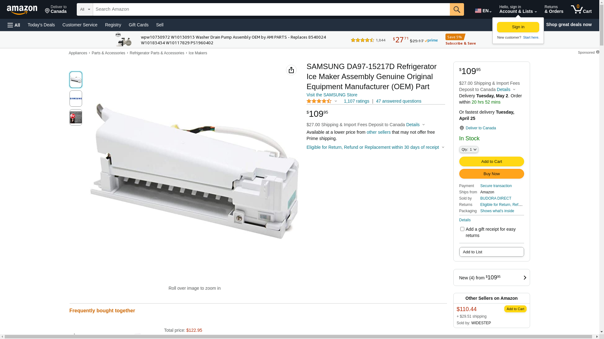 ![]() midwestapplianceparts.com | DA97-15217D-SAM-P | 1 | -2 | 1 | 1 @ $109.99 |