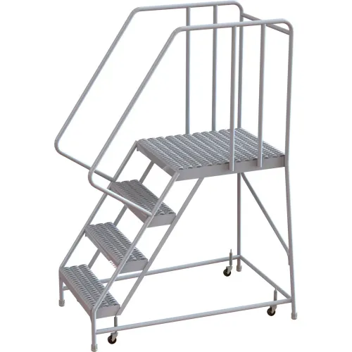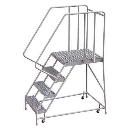 4 Step Aluminum Rolling Ladder, 24"W Grip Tread, 28"D Top Step, 32" Handrails - WLAR104245-D5