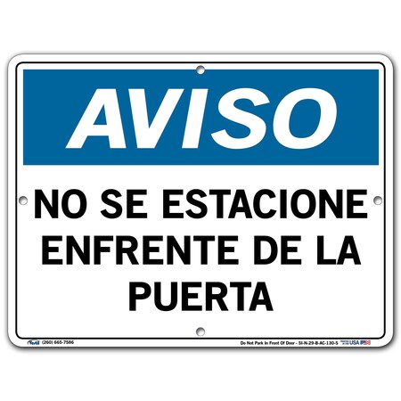 Vestil Notice SignSI-N-29-B-AC-130-S 29 12.5X9.5 Alum COMP .130 Do Not Park in Front of Door NO SE ESTACIONE ENFRENTE DE LA PUERTA