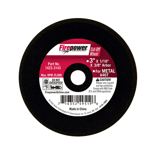 Firepower 1423-3143 Firepower Cut-Off Abrasive Wheels, Type 1 (For Metal), 3? x 1/16? x 3/8?