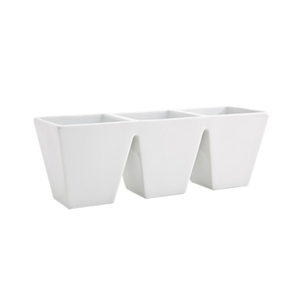 Front of the House BHO048WHP22 Kyoto Triple Bowl, 3" Height, 3" Width, 9" Length, 6 oz. Per Section, Porcelain (Pack of 6)