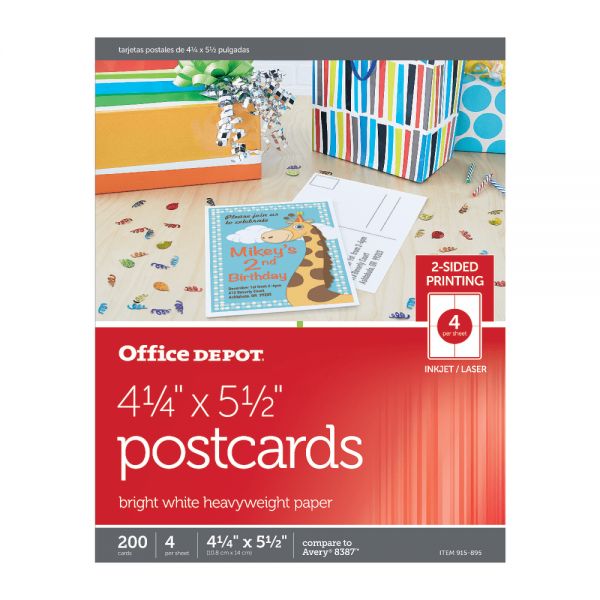 Office Depot® Brand Inkjet/Laser Post Cards, 4 1/4" x 5 1/2", Bright White, Pack of 200