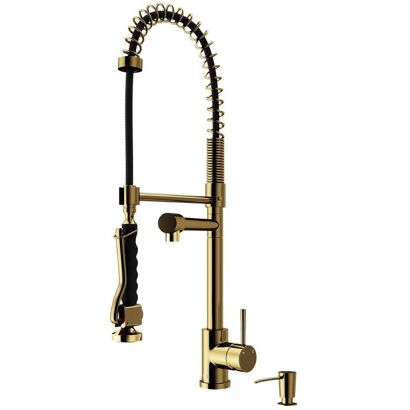 VIGO VG02007MGK2 SEMI PRO PULL-DOWN SPRAY KITCHEN FAUCET, ADD SOAP DISPENSER, MATTE BRUSHED GOLD