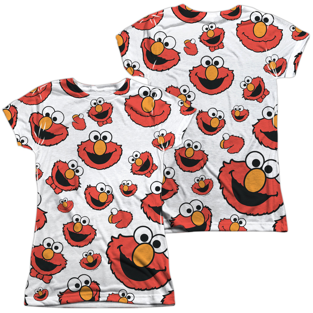 Trevco SST167FB-JSPP-2 Sesame Street & Elmo Face Pattern Front & Back Print Junior Cap Sleeve Polyster Crew Neck T-Shirt