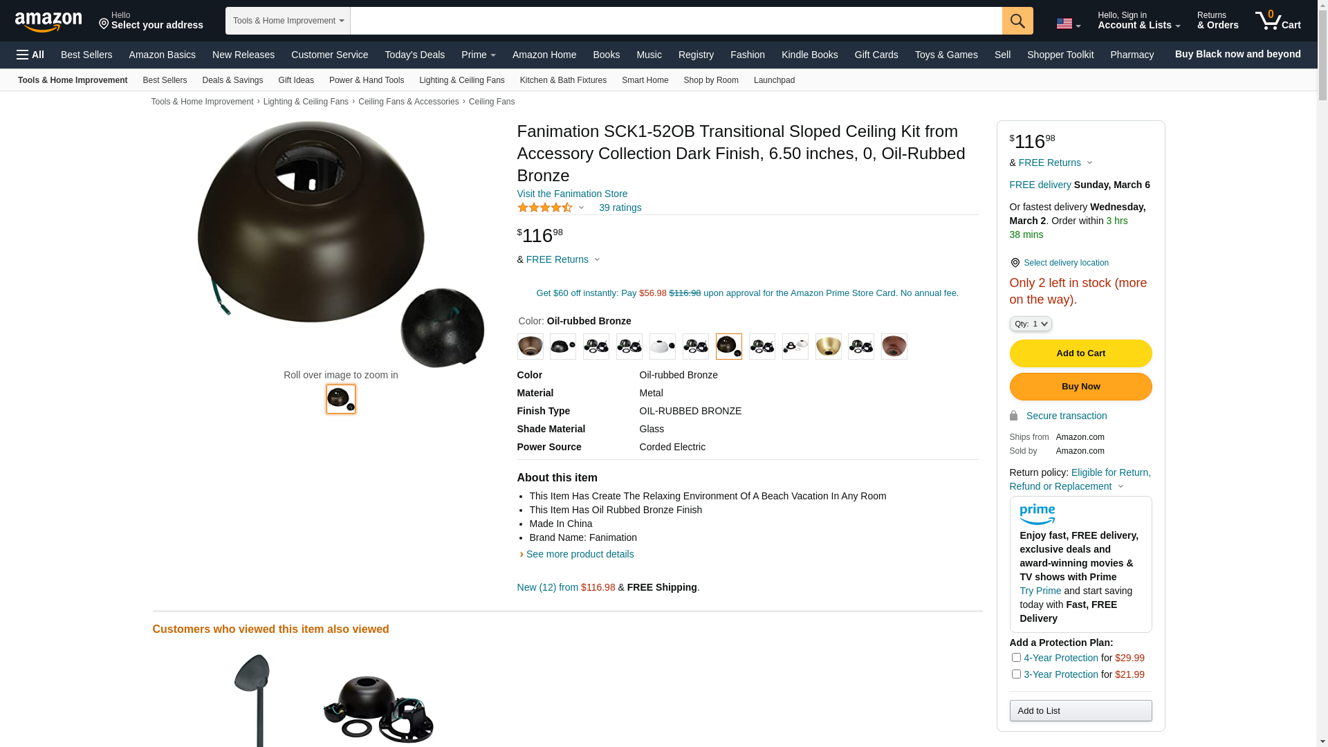 Fanimation SCK1-52 Sloped Ceiling Mounting Kit For Fanimation Ceiling Fans, Oil Rubbed Bronze