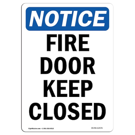 OSHA Notice Sign, Fire Door Keep Closed, 24in X 18in Rigid Plastic