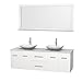 Wyndham Collection Centra 72 inch Double Bathroom Vanity in Matte White, White Man-Made Stone Countertop, Arista White Carrera Marble Sinks, and 70 inch Mirror