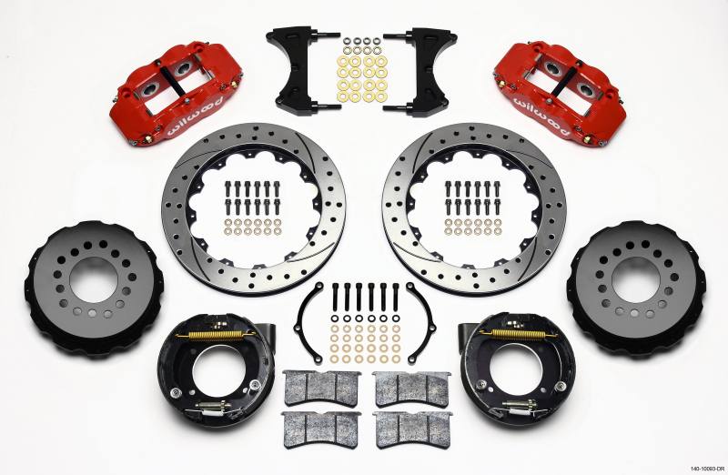 Wilwood Forged Narrow Superlite 4R Big Brake Rear Parking Brake Kit, Drilled and Slotted Rotor - Red - Chevy C-10 | 140-10093-DR
