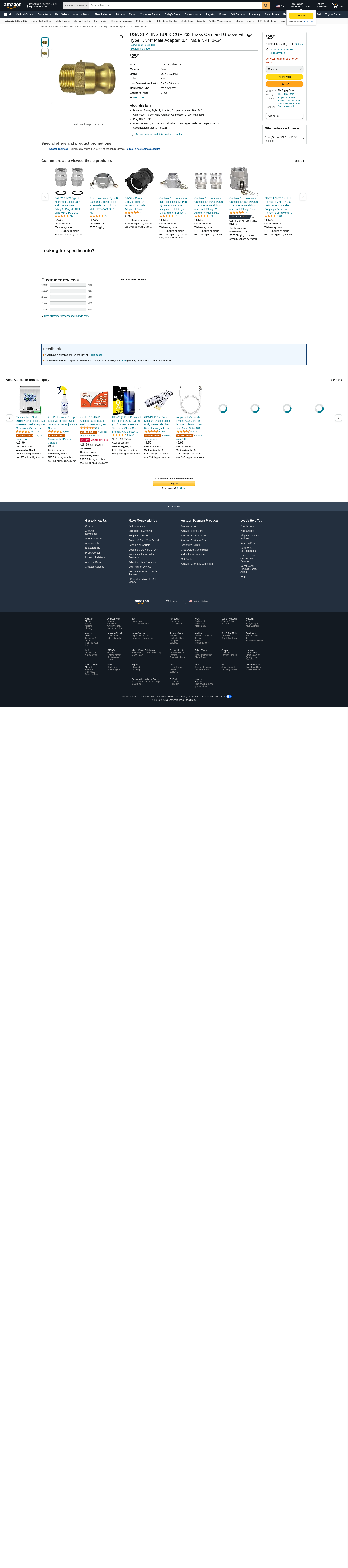 USA SEALING BULK-CGF-233 Brass Cam and Groove Fittings Type F, 3/4" Male Adapter, 3/4" Male NPT, 1-1/4"