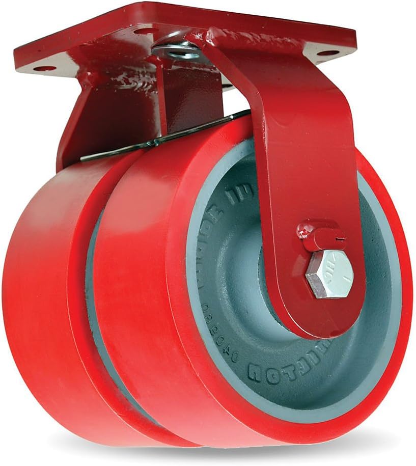 Hamilton Extra Heavy Duty Dual Wheel Caster - 12"Dia.X3"W Wheel - 7000-Lb. Capacity - Ultralast Polyurethane Wheel - Tapered Bearing - Rigid - Red