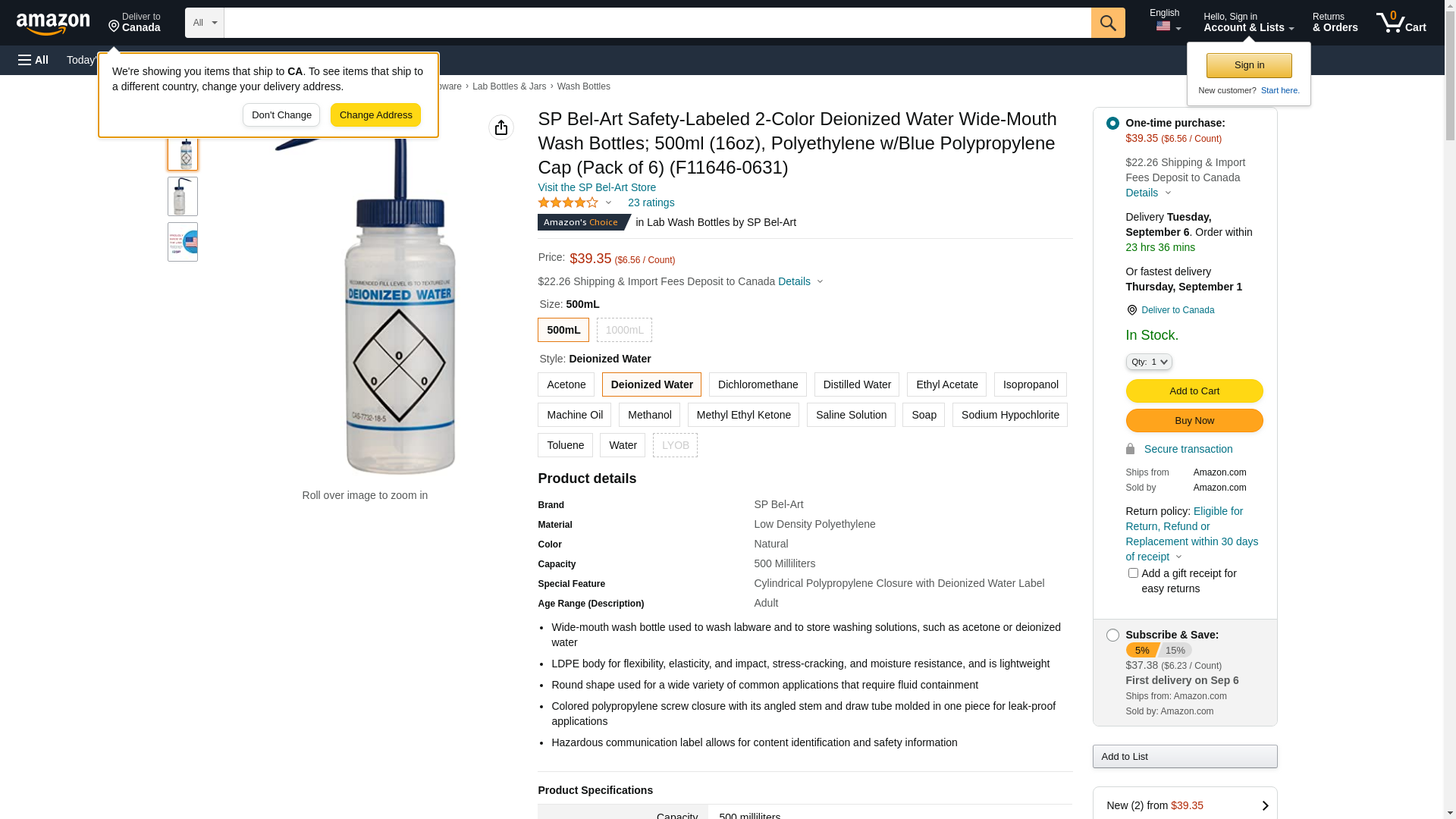 | Feature | Price For: Each Cap Material: Polypropylene Diameter: 53mm Wash Bottle Style: Standard Spout Item: Wash Bottle Bottle Material: LDPE Mouth: Wide Imprinting: Deionized Water Opacity: Translucent Venting: Non-Vented Cap Color: Blue Color: Clear Capacity: 500mL Country of Origin (subject to change): United States |