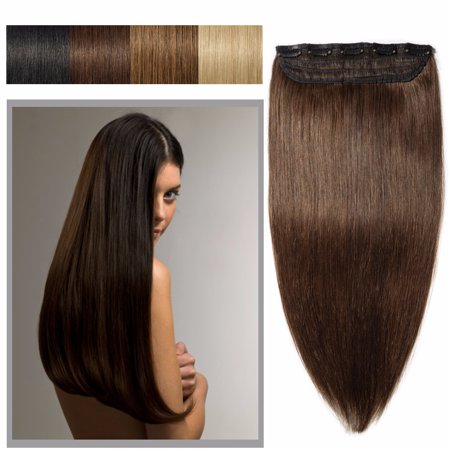 <ul> <li>Real remy human hair extensions:silky,straight,easy make-up,durable.</li> <li>One-piece weft with 5 clips:easy to use and save your time.</li> <li>US Local Stock,fast delivery(2-5 business days).</li> <li>Wide usage:can be dyed,curled,straightened,washed and cut.</li> </ul>