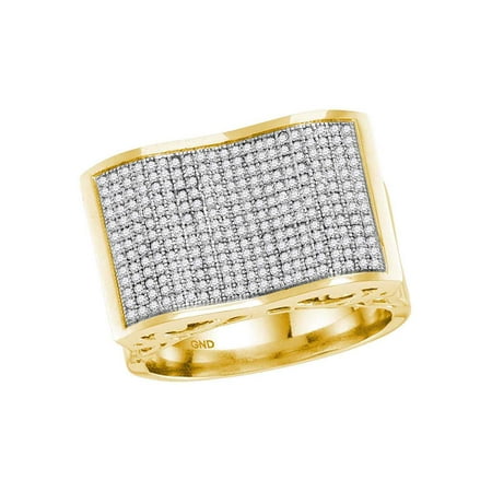 <ul> <li>10kt Yellow Gold</li> <li>3/4 Carats total weight</li> <li>7.71 grams (approximately)</li> <li>Ring size selectable. All diamonds are natural and conflict-free in origin.</li> </ul>