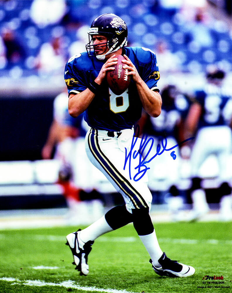 Schwartz Sports Memorabilia BRU08P310 8 x 10 in. Mark Brunell Signed Jacksonville Jaguars Drop Back Action Photo