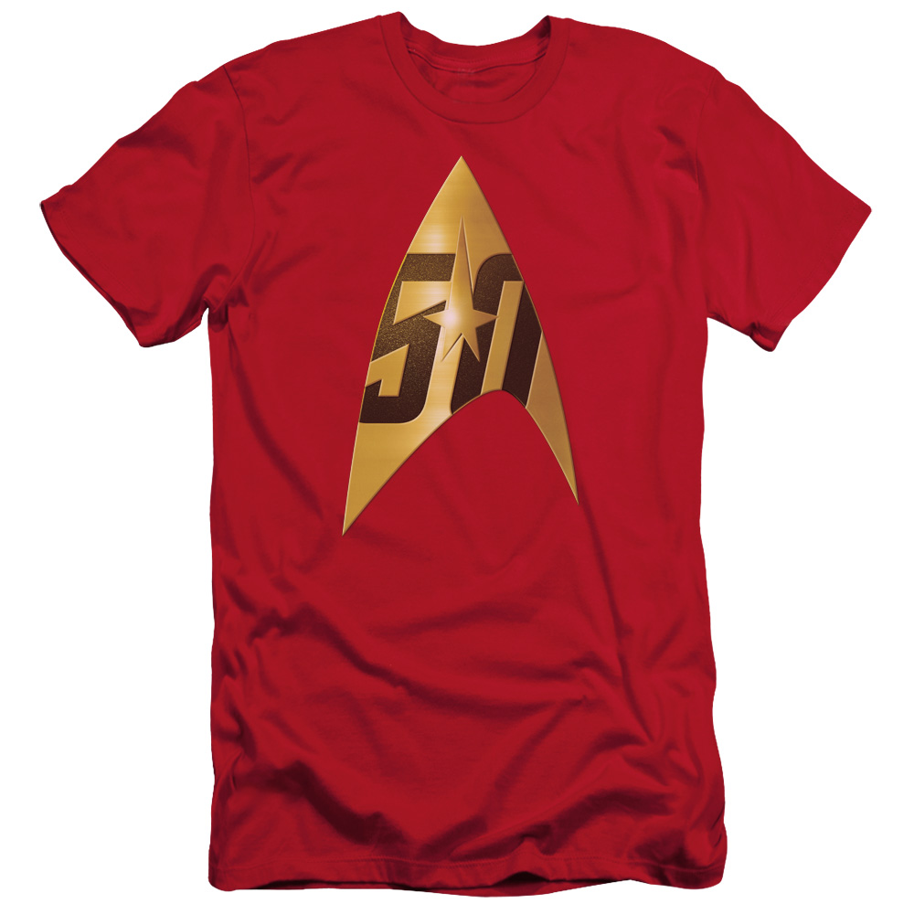 Trevco CBS1753D-SF-1 Star Trek & 50th Anniversary Delta Adult 30-1 Slim Fit Short Sleeve T-Shirt, Red - Small