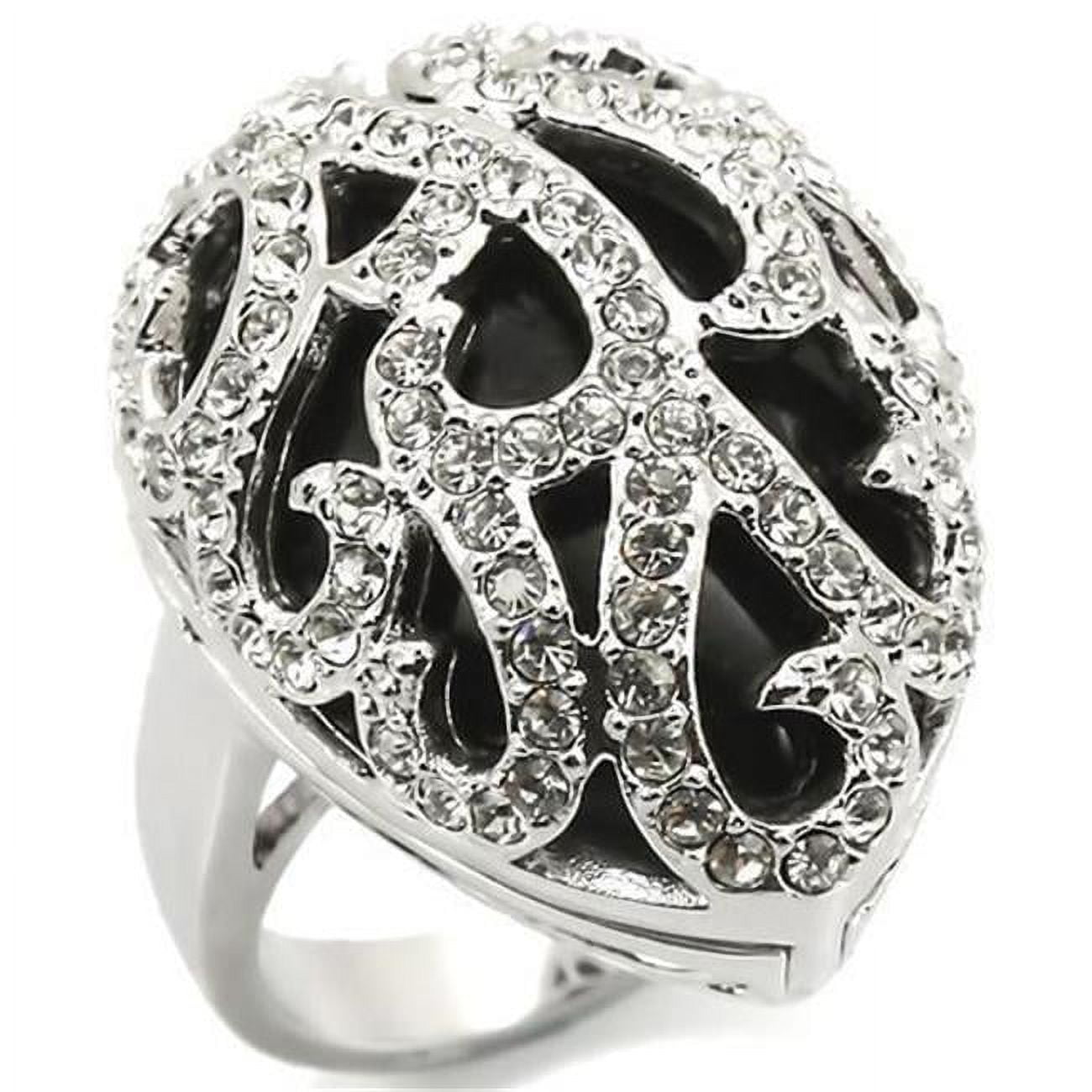 Alamode LOA943-10 Women Rhodium Brass Ring with Semi-Precious in Jet - Size 10
