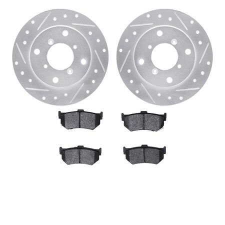 Dynamic Friction Company Rear Brake Rotors Drilled and Slotted Silver with 5000 Advanced Brake Pads - 7502-01020
